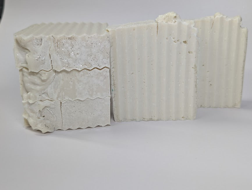 Ingredients: Coconut oil, soybean oil, olive oil, hemp oil, shea butter, kaolin clay, sodium hydroxide, mica and fragrance.