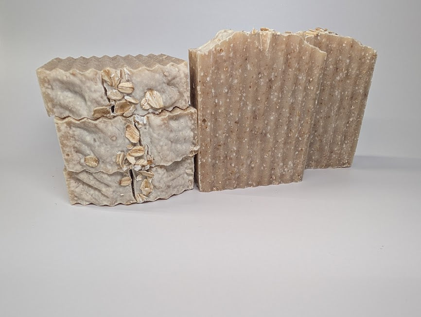 Ingredients: Coconut oil, soybean oil, olive oil, hemp oil, shea butter, kaolin clay, oatmeal, honey, sodium hydroxide, mica and fragrance.