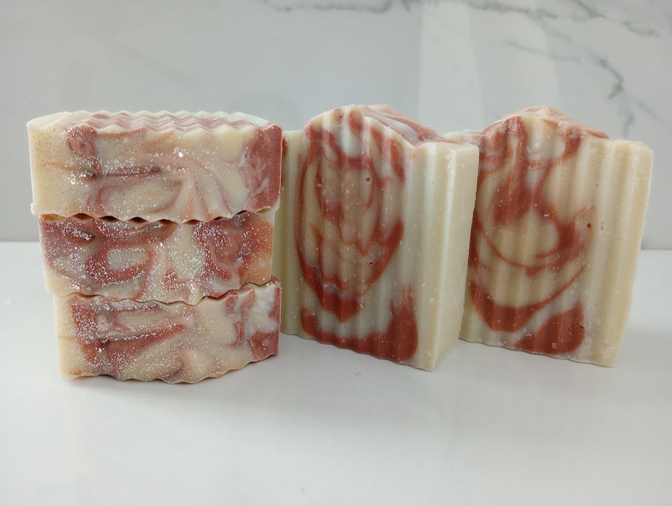 Ingredients: Coconut oil, soybean oil, olive oil, hemp oil, shea butter, kaolin clay, sodium hydroxide, mica and fragrance.